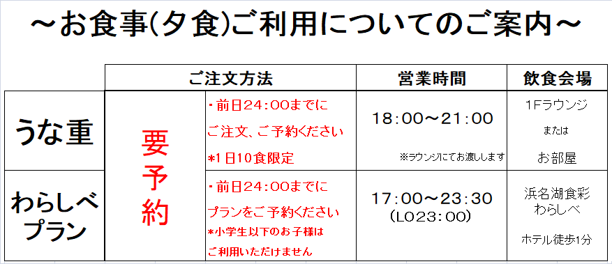 夕食案内(ご注文方法・飲食会場)